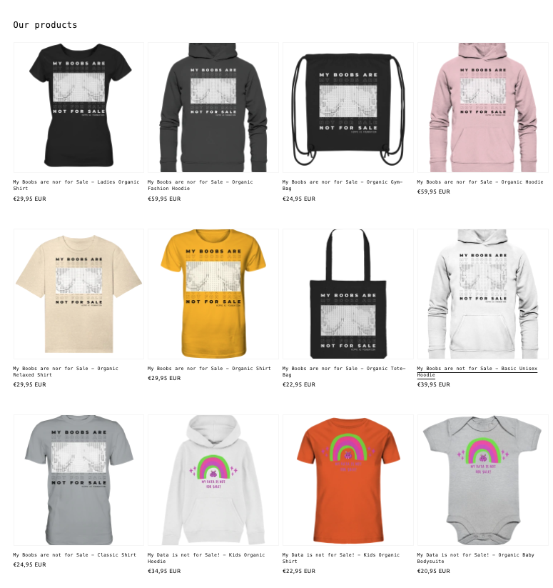 This is why we created the "My Boobs are not for Sale" design. By buying one of our designs, you support us on the way that -